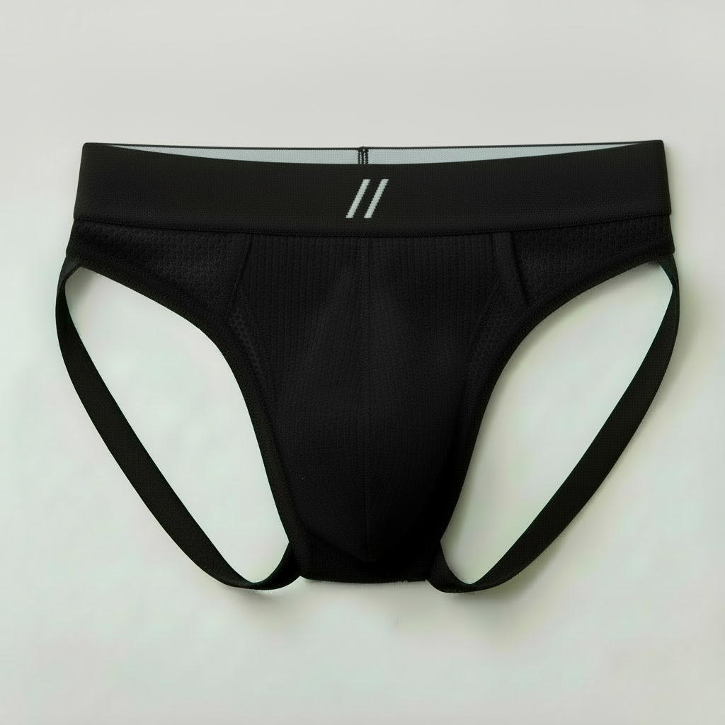 ROUG3 Jocks' Hustler Collection. Featuring seven new men's lingerie styles with metal "o-ring" hardware detailing to elevate your sexy, barely-there look. Available in Bronze, Steel Grey, and Jet Black.
